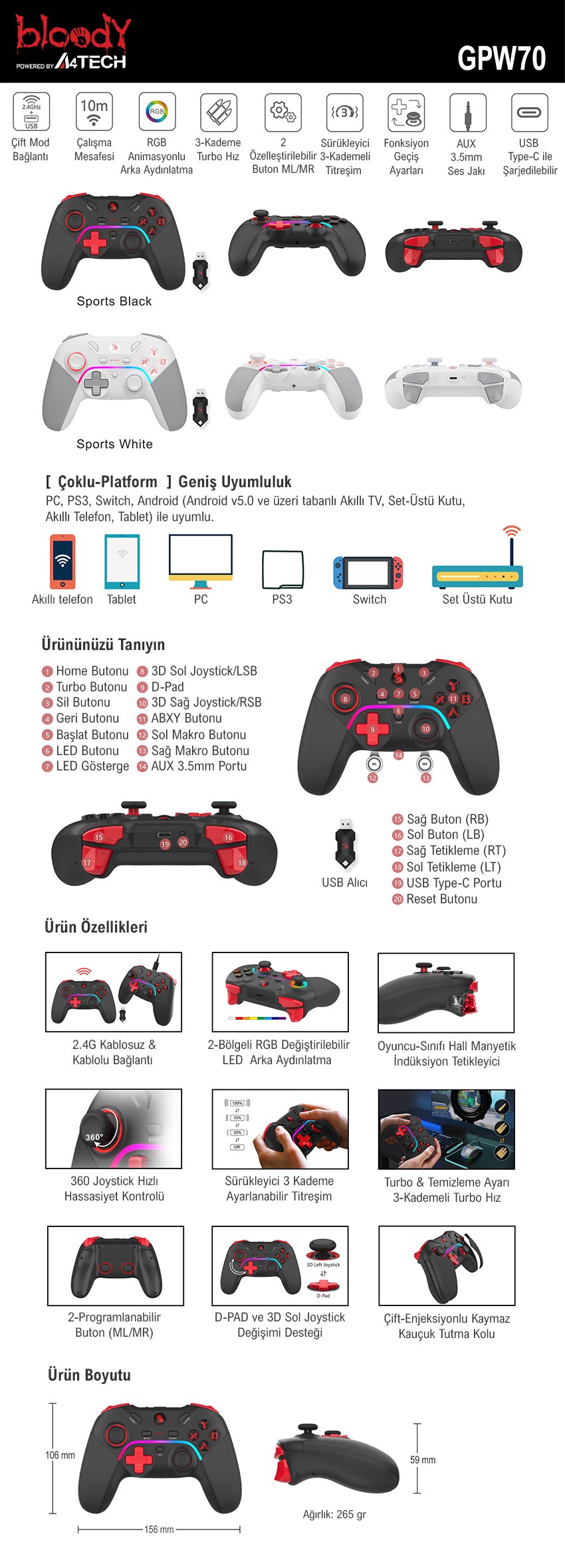 A4-Tech Bloody GPW70 RGB 2.4&USB PC/AND/SW/PS3 SBL (4711421995801)
