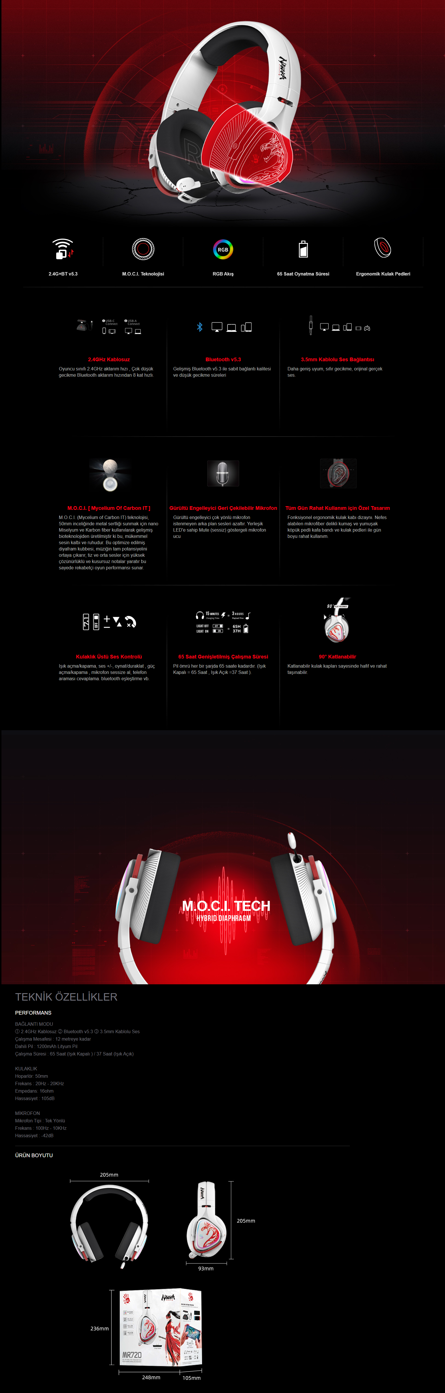 A4-Tech Bloody MR720 Naraka Şarj Edilebilir RGB Gaming Kulaklık
