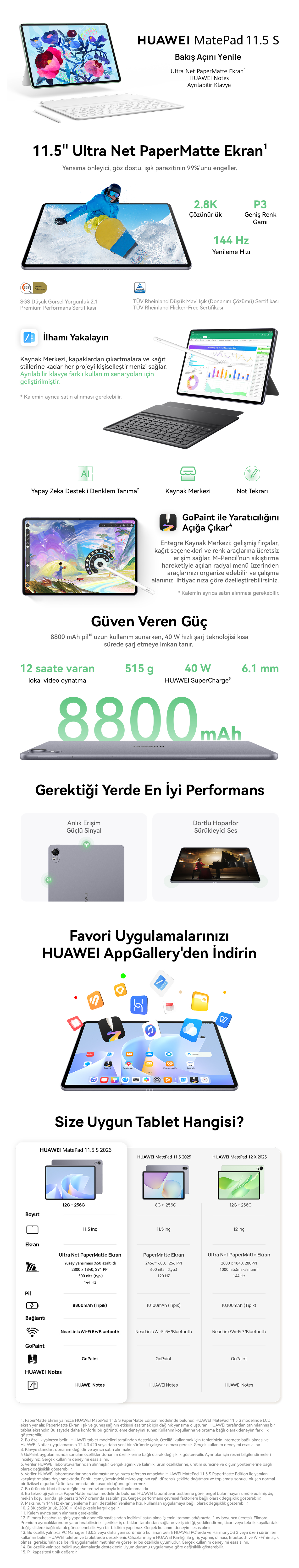 Huawei Yeni (2026) MatePad 11.5S Ultra Net PaperMatte Ekran 12GB 256GB Uzay Grisi + Ayrılabilir Klavye
