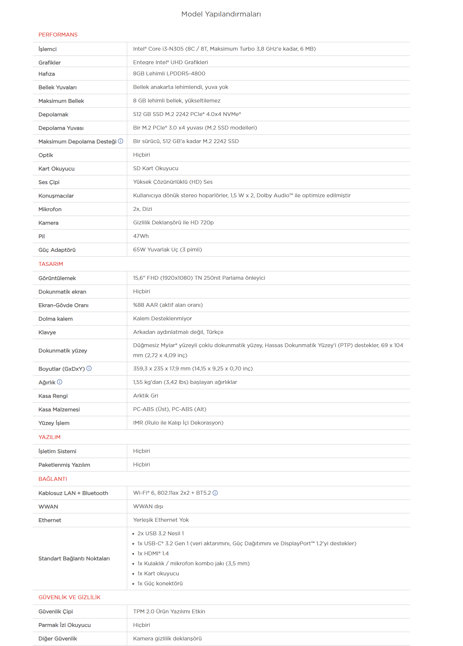 Lenovo IdeaPad Slim 3 15IAN8 Intel Core i3-N305 8GB 512GB SSD 15.6'' FHD TN Freedos Taşınabilir Bilgisayar 82XB00B4TX (198155106255)