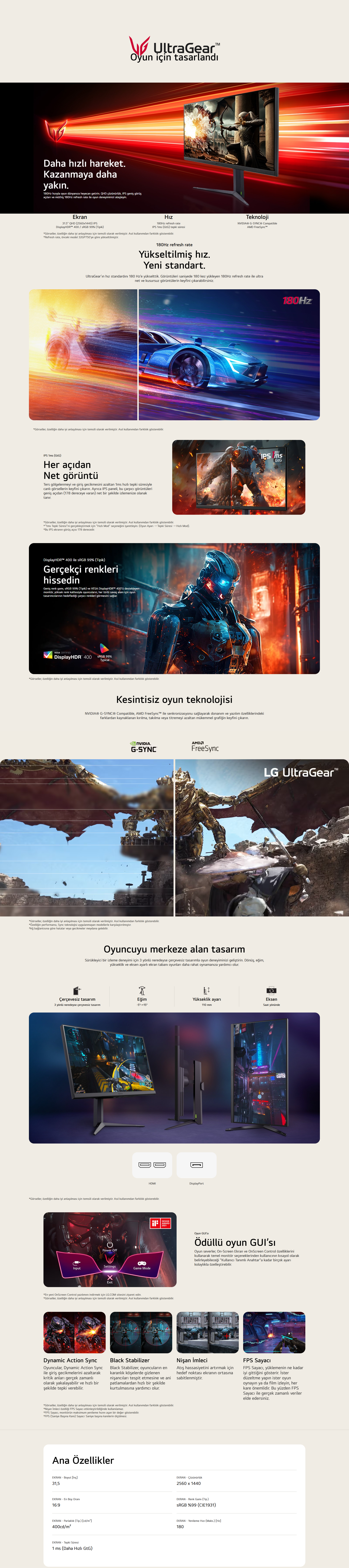 LG 32” UltraGear™ QHD IPS 180Hz Oyun Monitörü | 1ms (GtG), DisplayHDR™ 400 (32GS75Q-B) (8806096123249)