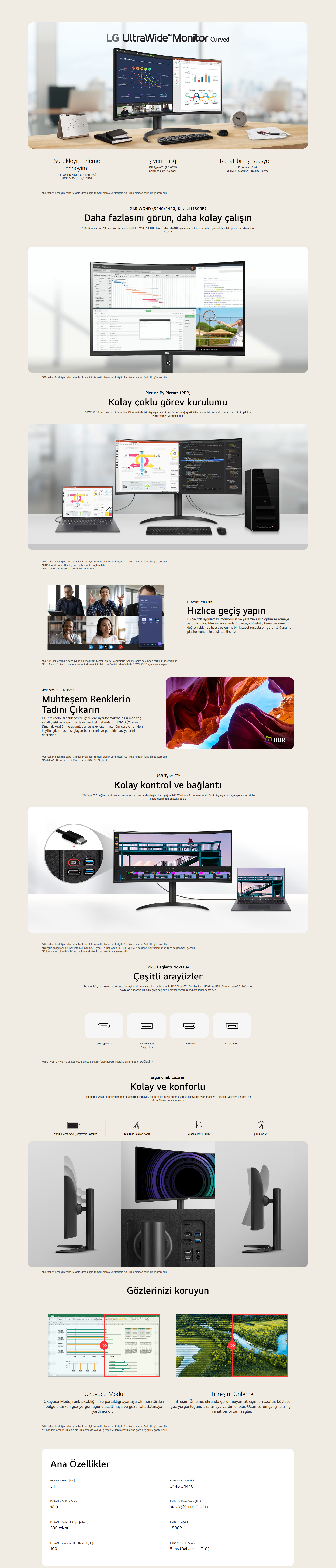 LG 34'' UltraWide QHD USB Type-C™ Kavisli Monitör (34WR55QK-B) (8806096564332)