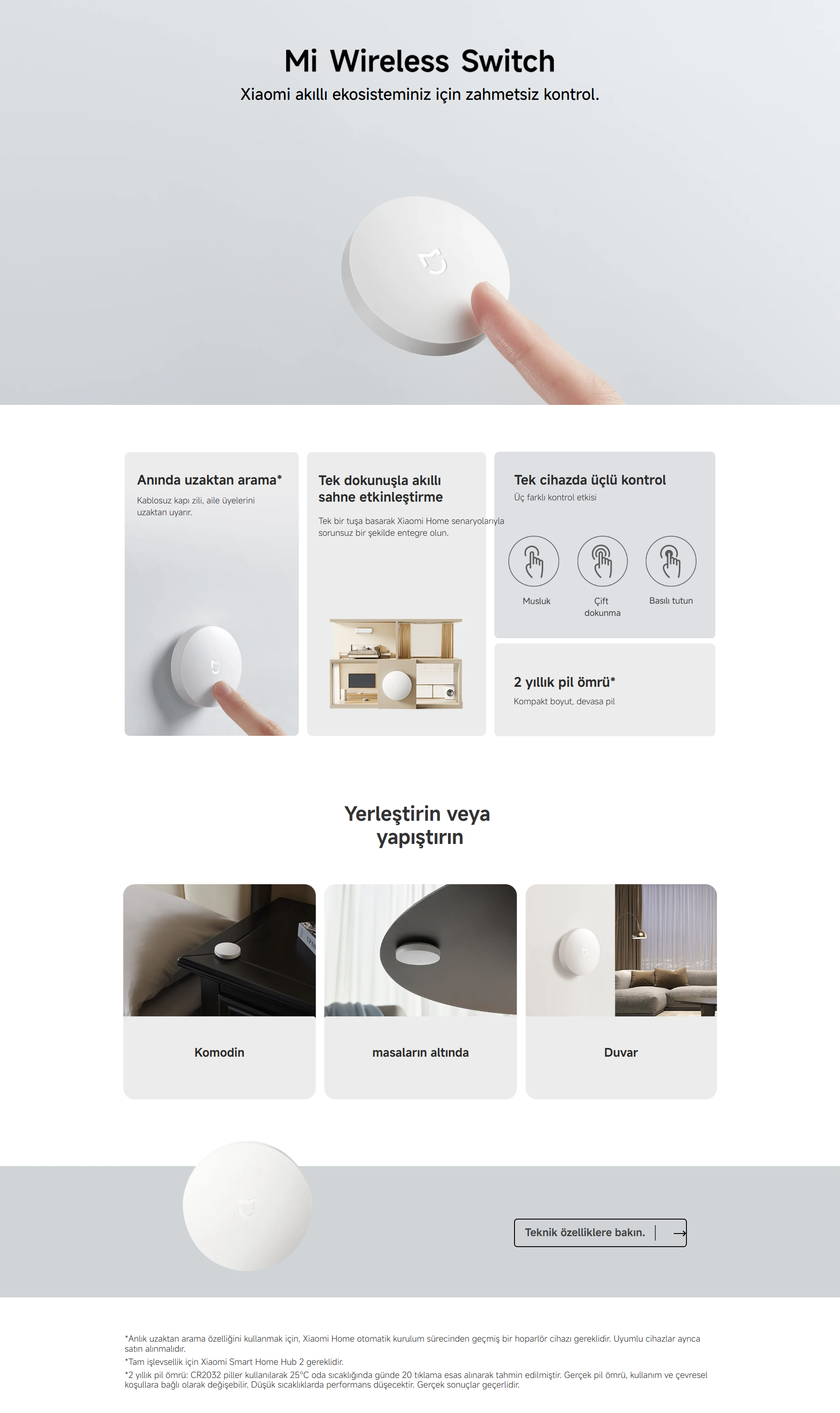 Xiaomi Mi Smart Home Akıllı Programlanabilir Buton Kablosuz Tap Anahtar Switch (6934177710834)