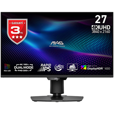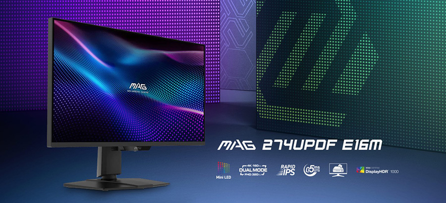 MSI MAG 274UPDF E16M Gaming monitör Mini-LED teknolojisi, UHD 160Hz ve FHD 320Hz arasında seçim yapabileceğiniz dual mode ve oyun deneyiminizi optimize eden AI Navigator özelliği ile donatılmıştır. 27” Quantum Dot teknolojili Rapid IPS paneli, 0,5 ms (GtG, Min.) tepki süresi ve VESA DisplayHDR 1000 sertifikası ile üstün görüntü performansı sağlar.