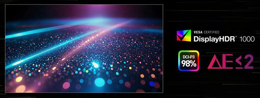 Bu monitör Quantum Dot teknolojisi ve DisplayHDR 1000 desteğiyle çarpıcı bir parlaklık ve derin kontrast sunar. DCI-P3 %98 renk gamı ve Delta E≤2 renk doğruluğu sayesinde zengin ve gerçekçi renkler üretir. Oyun, içerik üretimi ve eğlence için nefes kesici netliğin keyfini çıkarın.