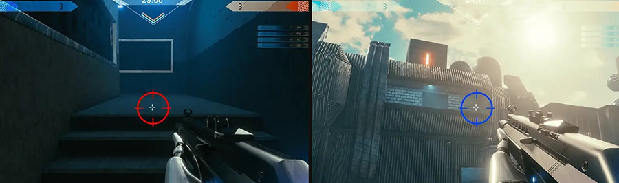 Hedef artısı otomatik olarak renk değiştirerek arkaplan rengi ne olursa olsun nişan aldığınız noktayı belirgin bir şekilde görmenizi sağlar.
