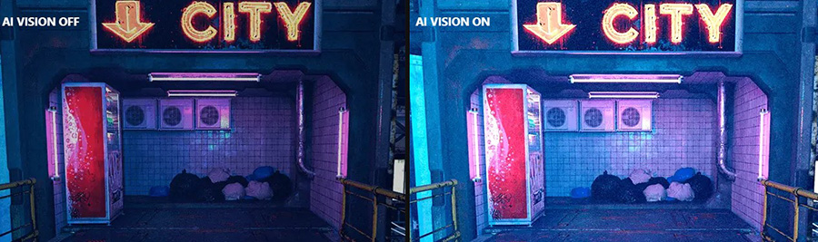 Yeni AI Vision teknolojisi karanlıkta kalan bölgeleri ortaya çıkarmakla kalmaz, aynı zamanda genel parlaklığı ve renk doygunluğunu da optimize ederek pırıl pırıl bir görüntü sunar.