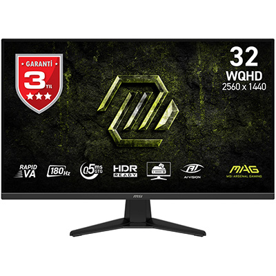 MAG 325QF E18V oyuncu monitörü ile en sürükleyici oyun deneyimini yaşayın. 2560x1440 (WQHD) panel, 180Hz tazeleme hızı ve 0.5ms (GtG, Min) tepki süresine sahip bu monitör HDR Ready özelliği sayesinde üstün kontrast ve gölge ayarları ile göz alıcı detaylar sunar. Rekabetçi FPS, RPG/MMORPG ve simülatör oyunları için tasarlanan MSI MAG 325QF E18V, genel oyun deneyimini üst seviyeye taşır ve oyunun ötesini görmenizi sağlar.