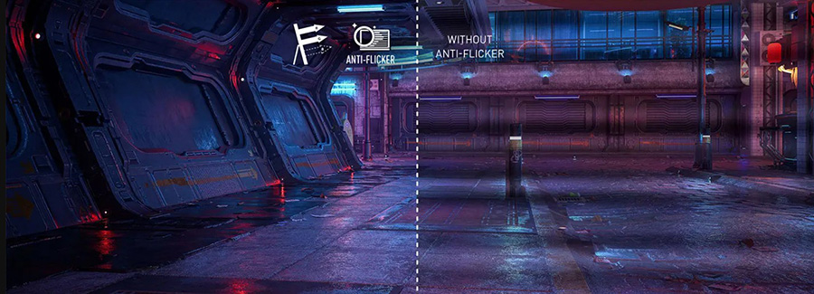 Anti-Flicker ve Less Blue Light teknolojileri, ekranda kırpışmayı ve mavi ışık seviyelerini azaltır. Böylece gözleriniz yorulmadan daha uzun süre oynayabilirsiniz.