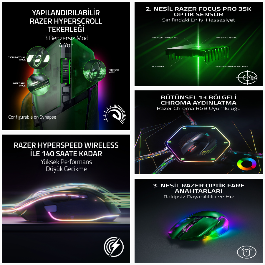 Razer Basilisk V3 Pro 35K Kablosuz Mouse Yeşil RZ01-05240300-R3G1 (8886419334804)