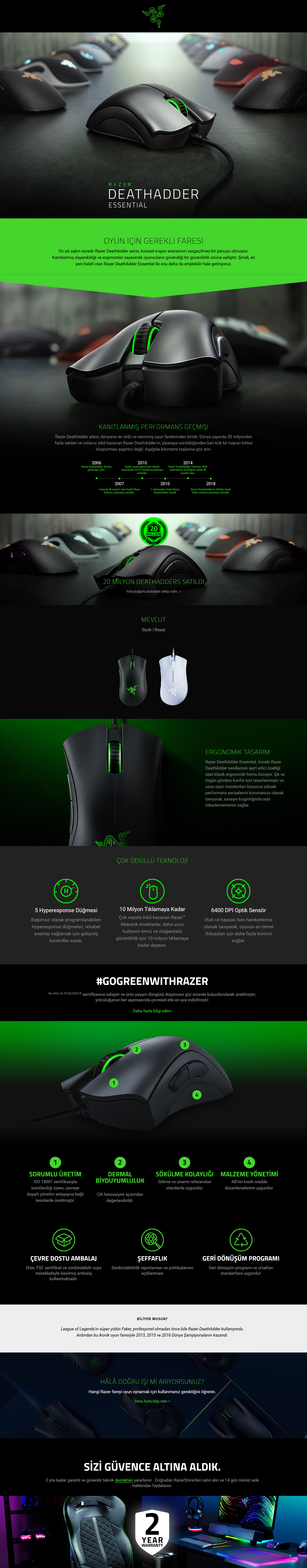 Razer DeathAdder Essential Siyah Kablolu Gaming Mouse (RZ01-03850100-R3M1)