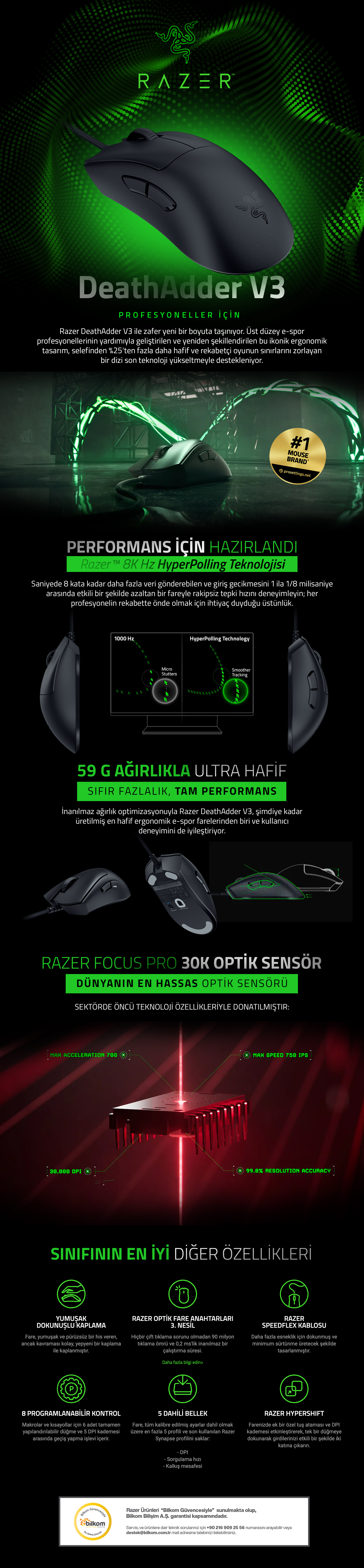 Razer DeathAdder V3 Ergonomik Kablolu Gaming Mouse RZ01-04640100-R3M1 (8886419334071)