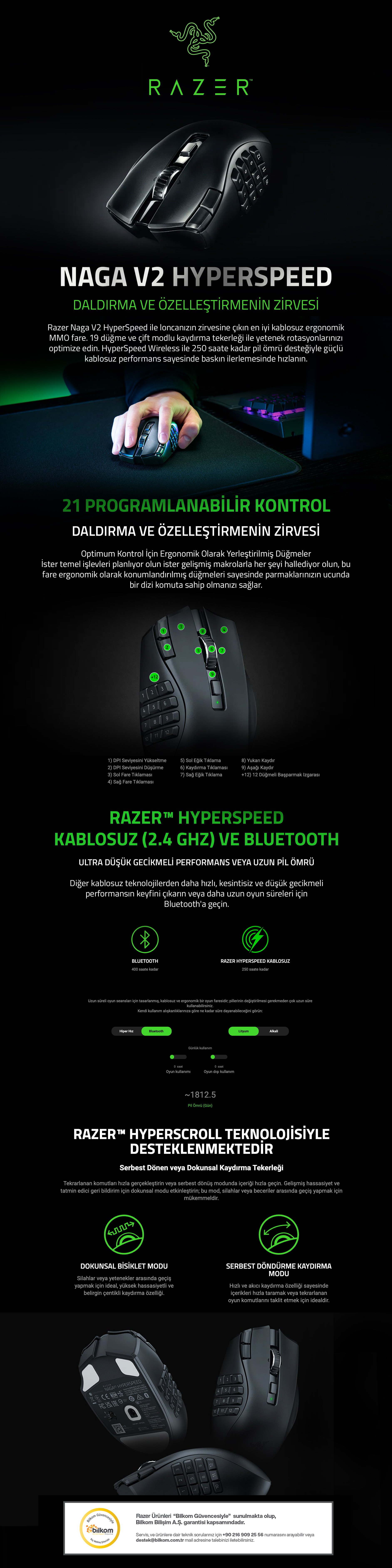 Razer Naga V2 HyperSpeed - Ergonomik Kablosuz MMO Gaming Mouse (8886419334002)