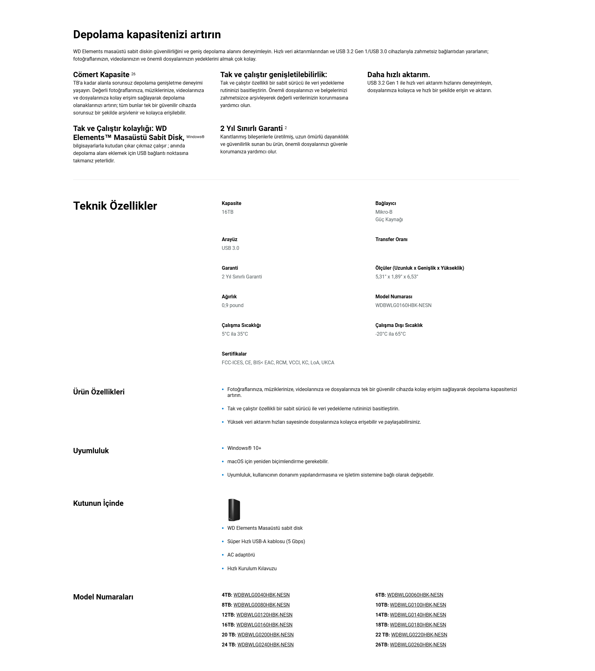 WD 16tb Elements 3.5'' Usb3 Bwlg0160hbk-eesn (718037878904)