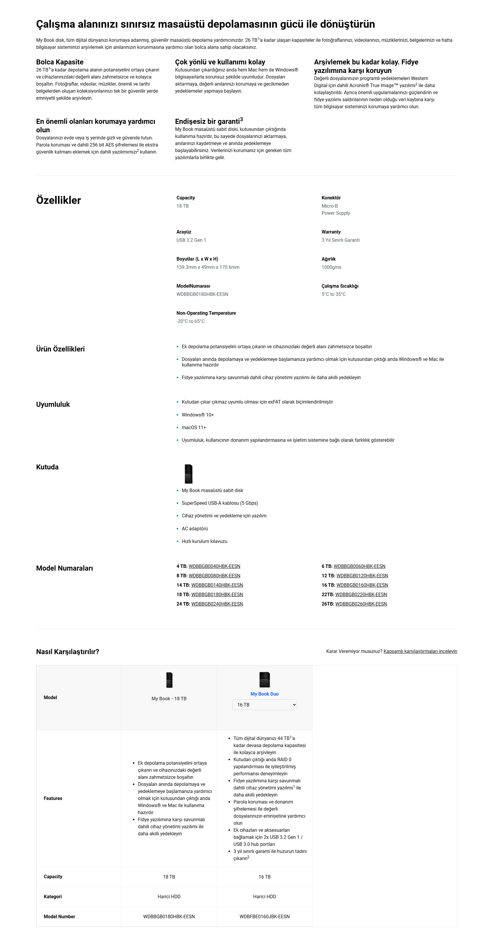 WD My Book 18TB USB3.2Gen1 3.5'' Masaüstü Harici Disk - WDBBGB0180HBK-EESN (718037878850)