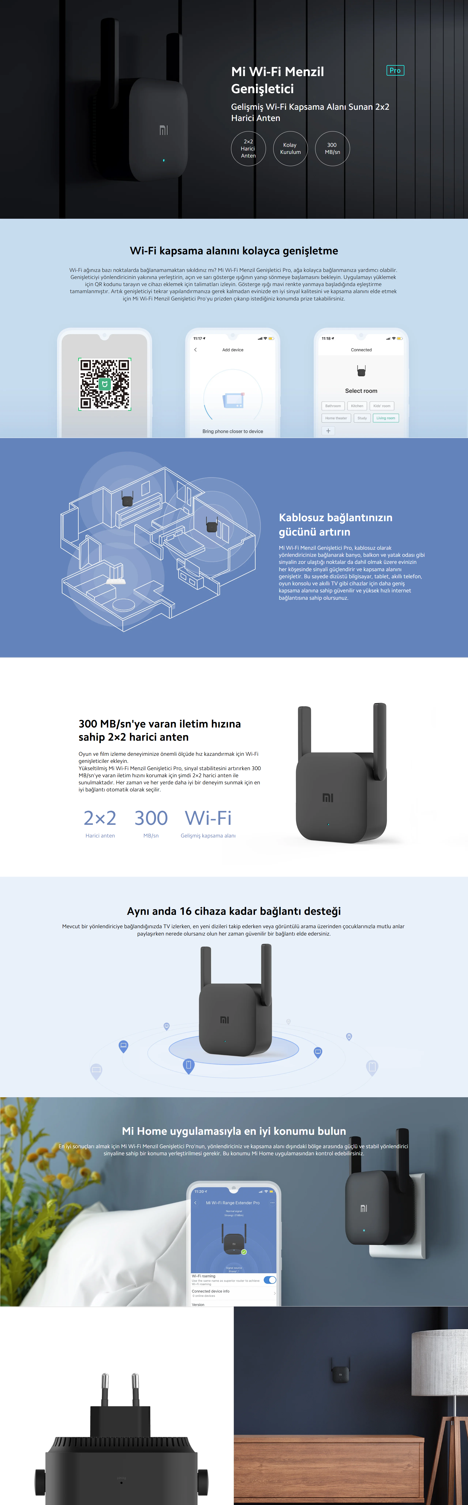 Xiaomi Mi Wi-Fi Menzil Genişletici Pro, Siyah